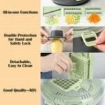 Description: A 9-in-1 Vegetable Cutter is an essential kitchen tool designed to quickly and efficiently chop, dice, or slice vegetables. This handy device typically consists of a container with a sharp grid of blades or disks that allow you to insert vegetables and press down, resulting in uniformly chopped pieces. Some vegetable choppers come with interchangeable blades for different cutting styles, such as slicing or julienning.