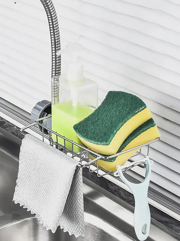 🧹 WIDELY USED: This versatile holder is a champ at keeping sponges, scouring pads, nylon scrubbers, brushes, soaps, and liquid soap dispensers within easy reach in the kitchen or bathroom. Perfect for dishcloths, cleaning brushes, and shower caddy soap. 🧼🪥
